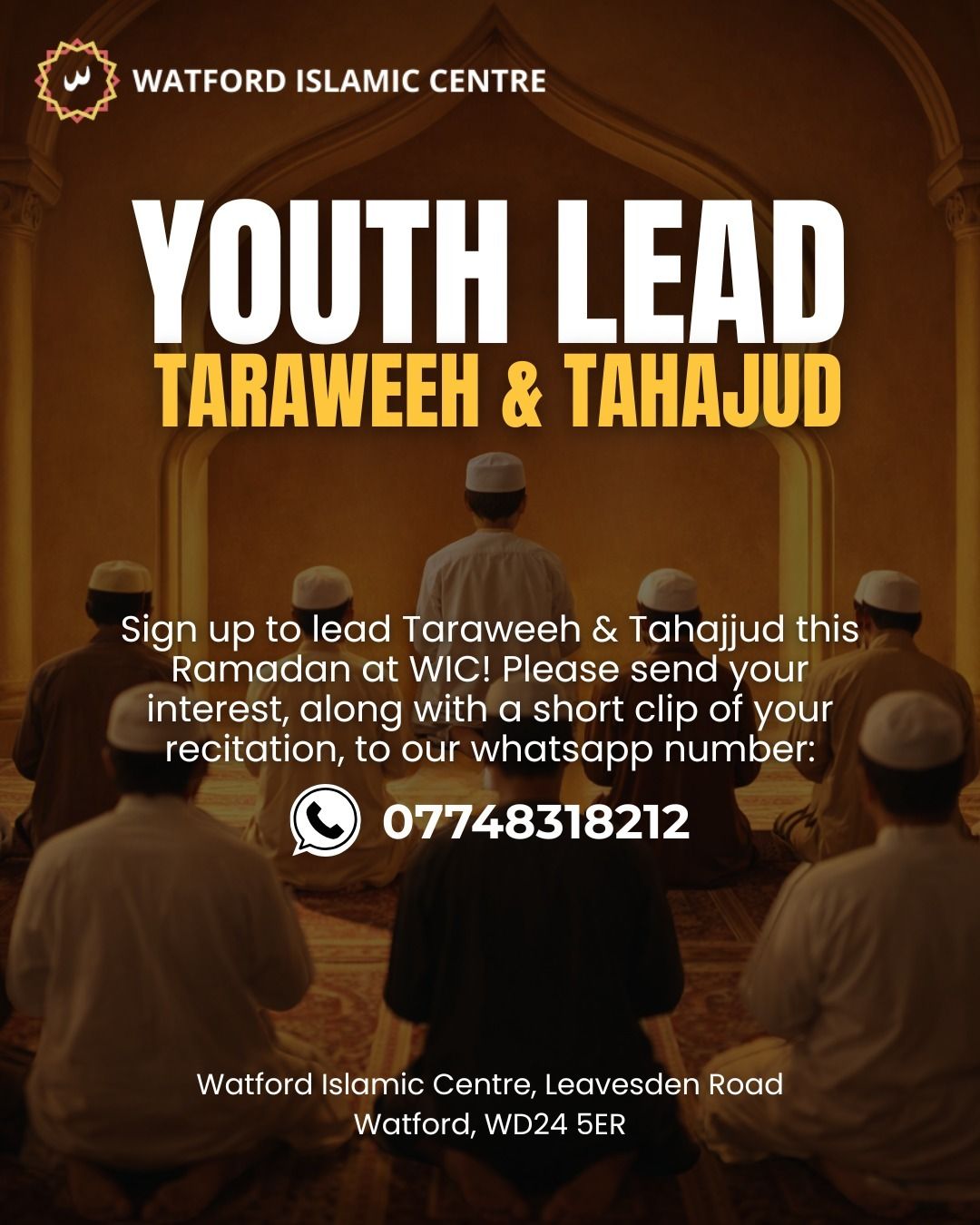 As we prepare for the blessed month of Ramadan, Watford Islamic Centre is inviting young brothers to take the lead in Taraweeh and Tahajjud prayers.