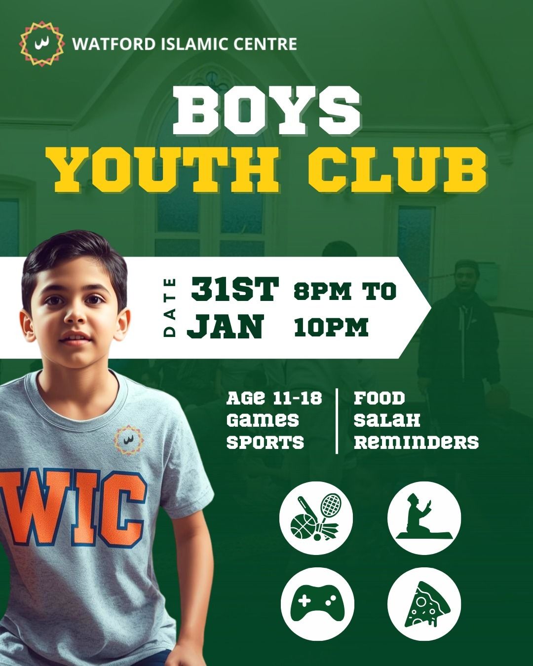 We pray this message finds you in the best of health and iman. On behalf of Watford Islamic Centre, we are pleased to announce a range of upcoming programmes and opportunities taking place at the centre. We encourage all members of our community, especially our youth, to participate, benefit, and stay connected to the masjid.